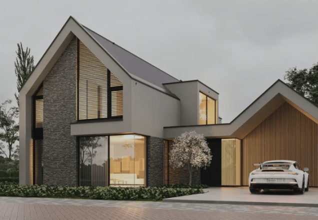 Residence takes advantage of abundant sunlight by incorporating solar panels into its architecture.